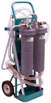 Highly sensitive fluid such as transfer oil, hydraulic oil and some gear oil must be filtered down to micron particulate size. In order to accommodate these fluids, CanGlobal has filtration systems available with dual filter housings that run in series. The first housing has a very fine micron particulate filter to filter these sensitive fluids to the most demanding standards. The second housing holds a water removing filter cartridge that will insure that the water is removed from the fluid.