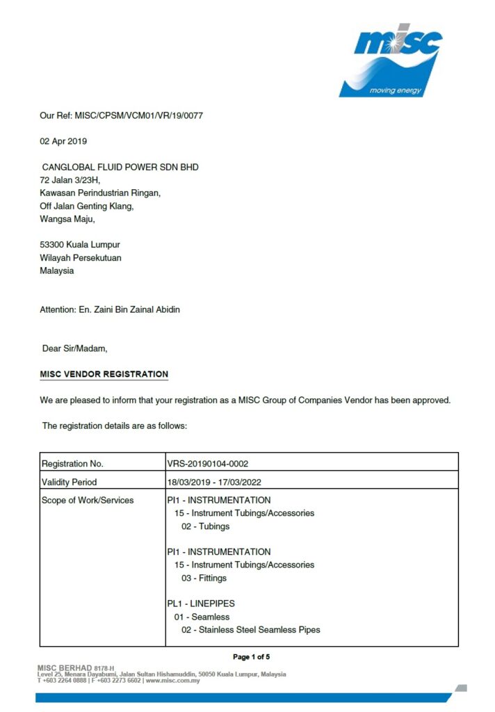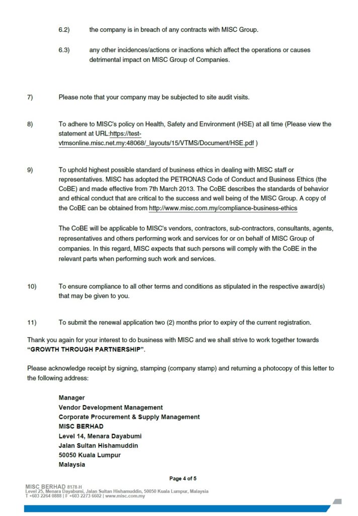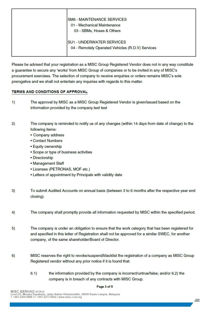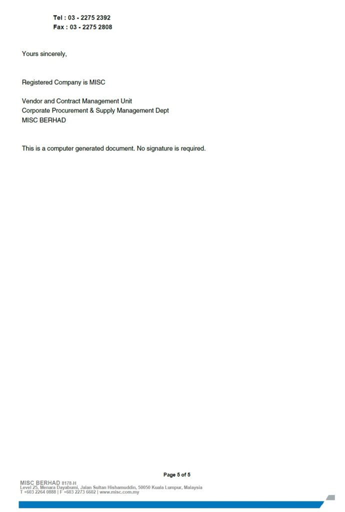 MISC Bhd Certificate